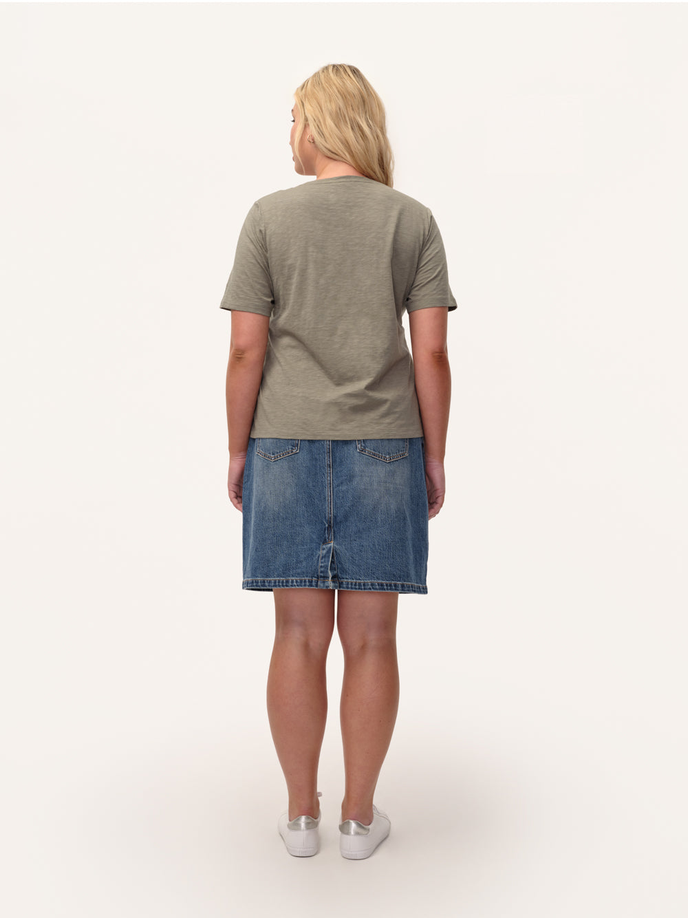 A little update to the mid-length sleeve, this one hits just above the elbow: classic open scoop neck, ultra-soft 100% organic cotton.