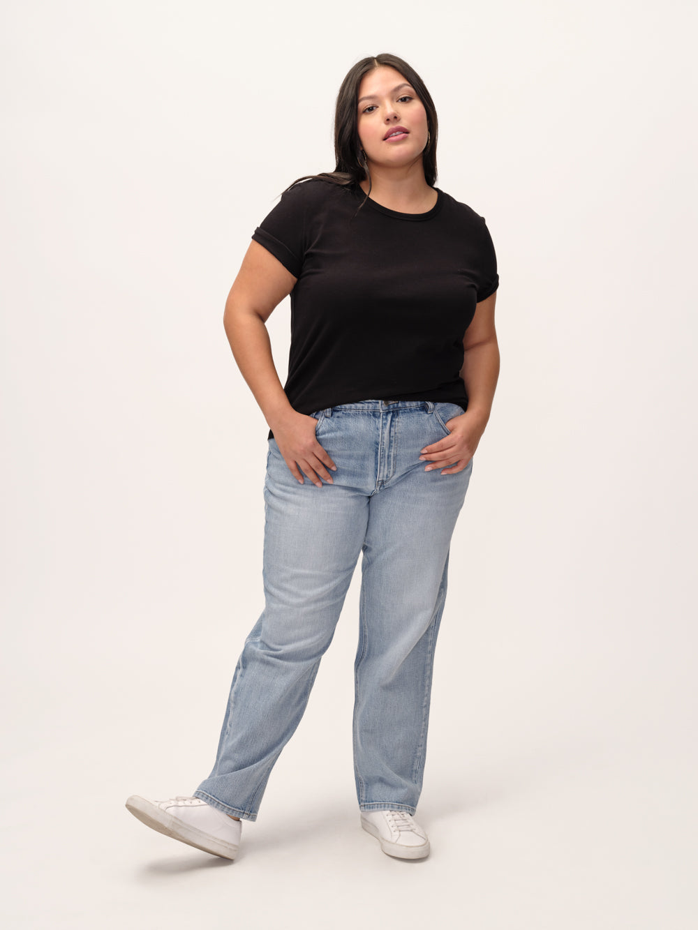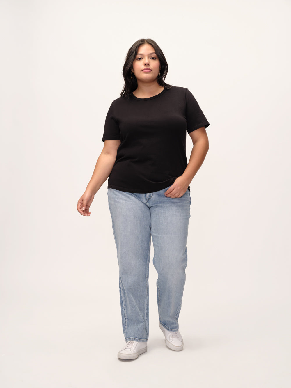 Go with a classic: this crew neck, short-sleeve tee is soft, a little stretchy, and 100% essential.