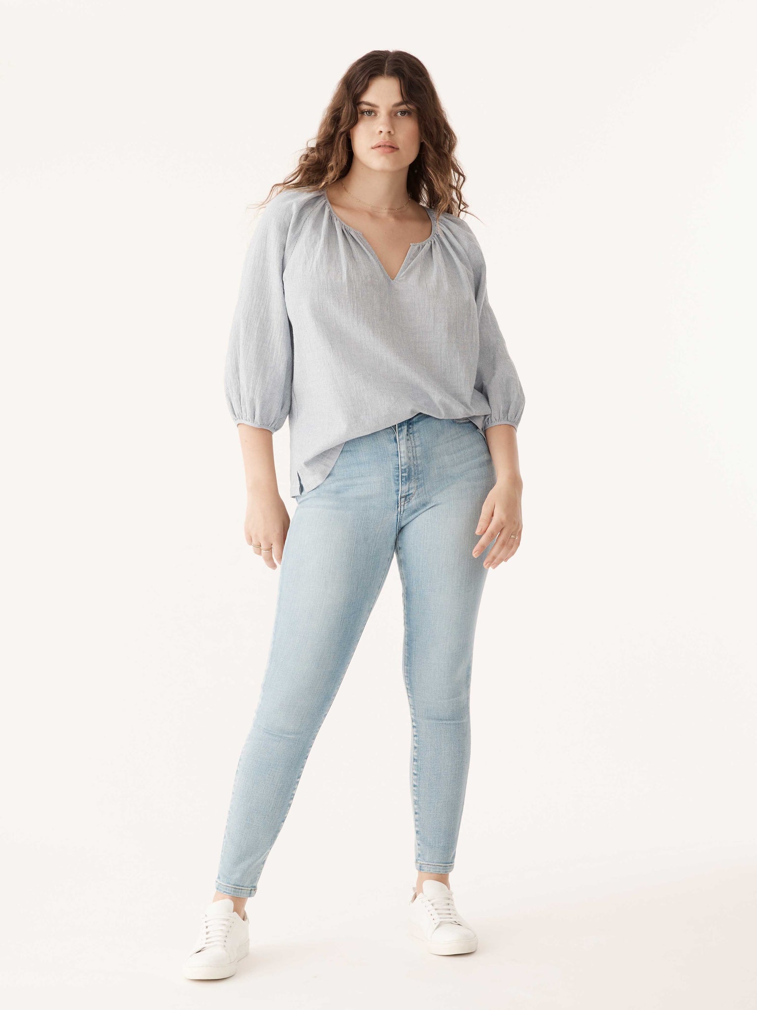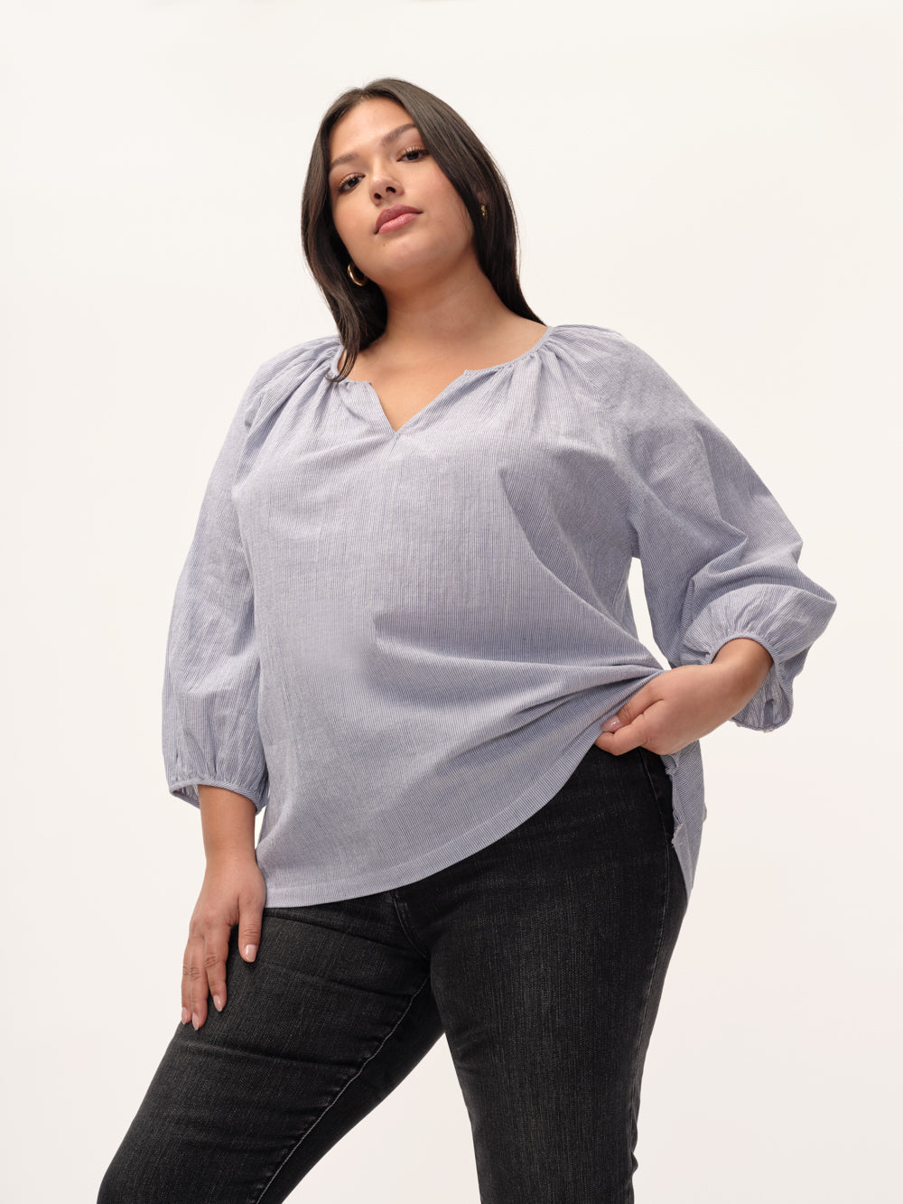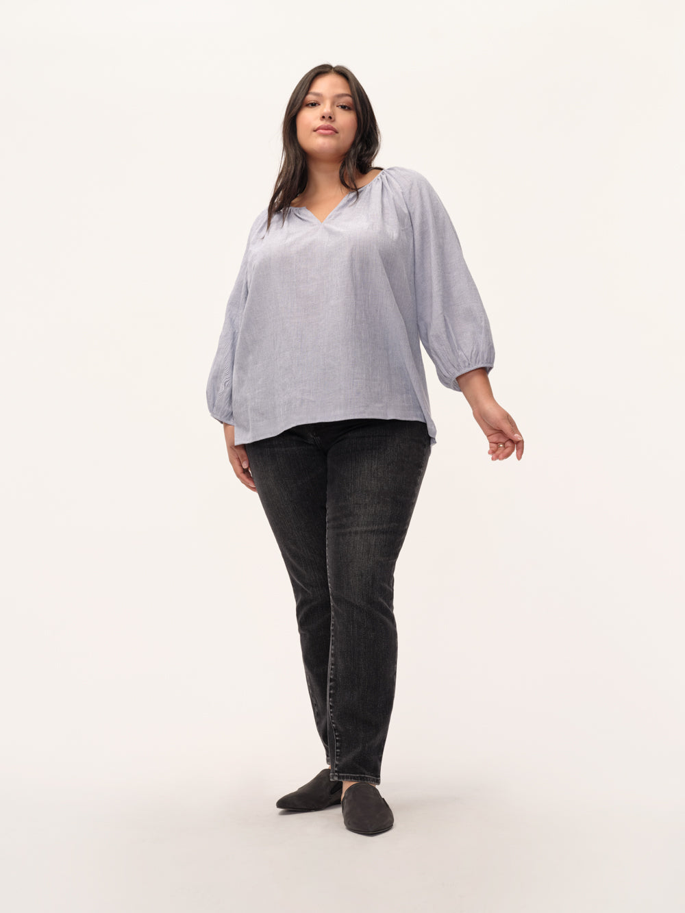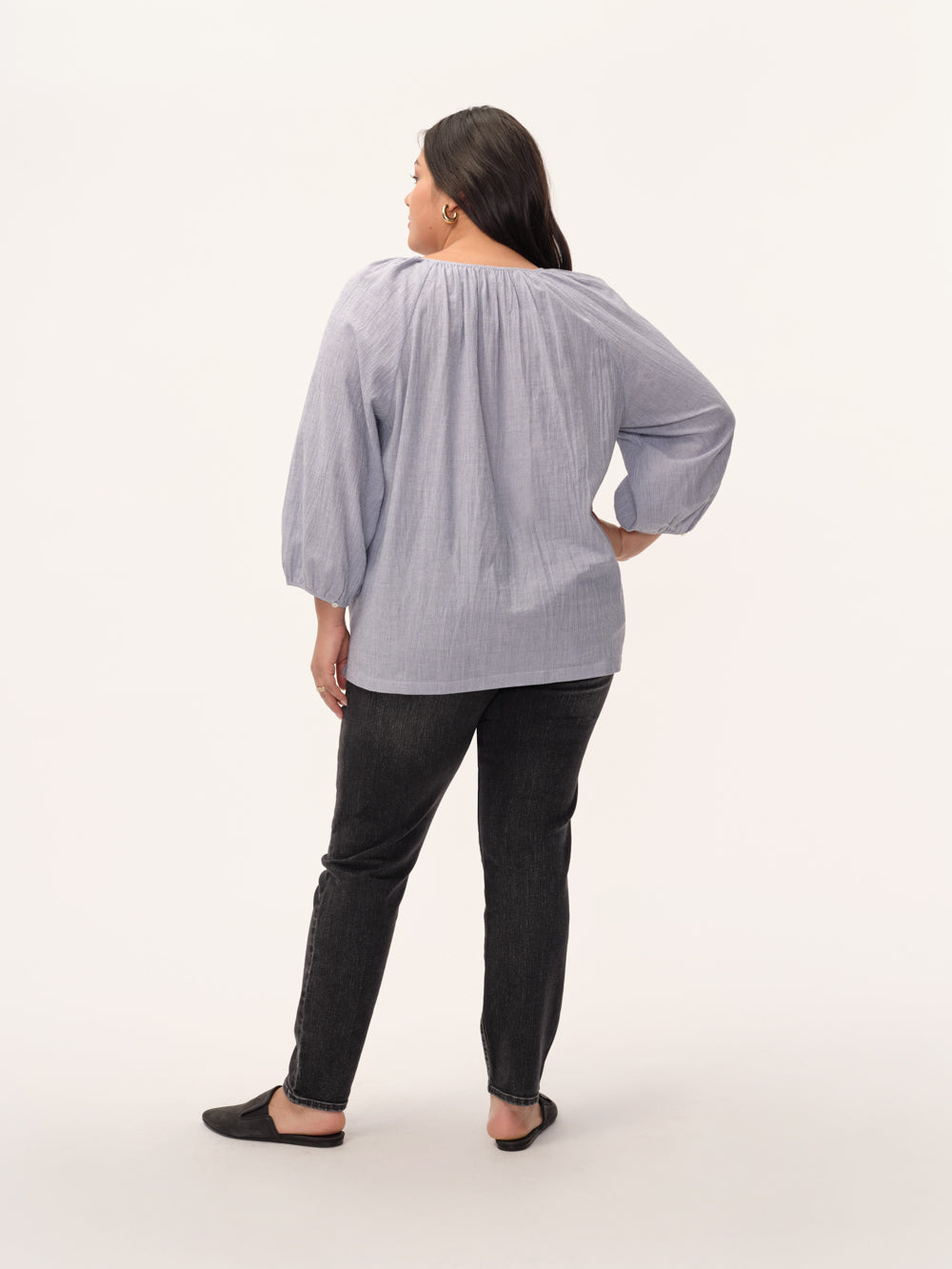 A lightweight, cotton voile top with a soft necklinewearing it feels like summer, but this blouse works year-round.