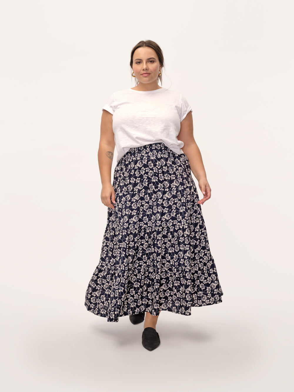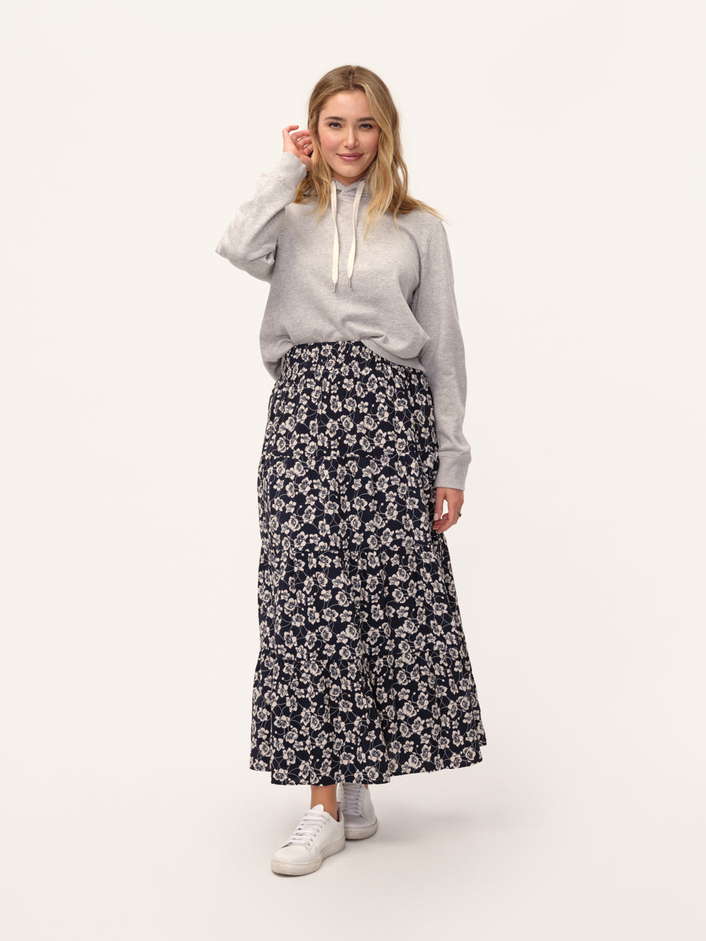 A lightweight, floral maxi skirt with a tiered silhouette: this is an endlessly wearable, romantic wardrobe staple.