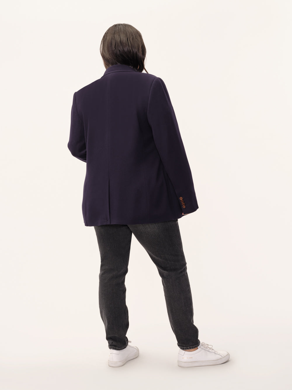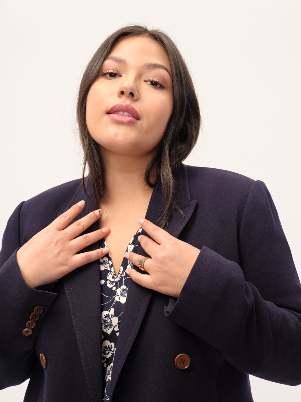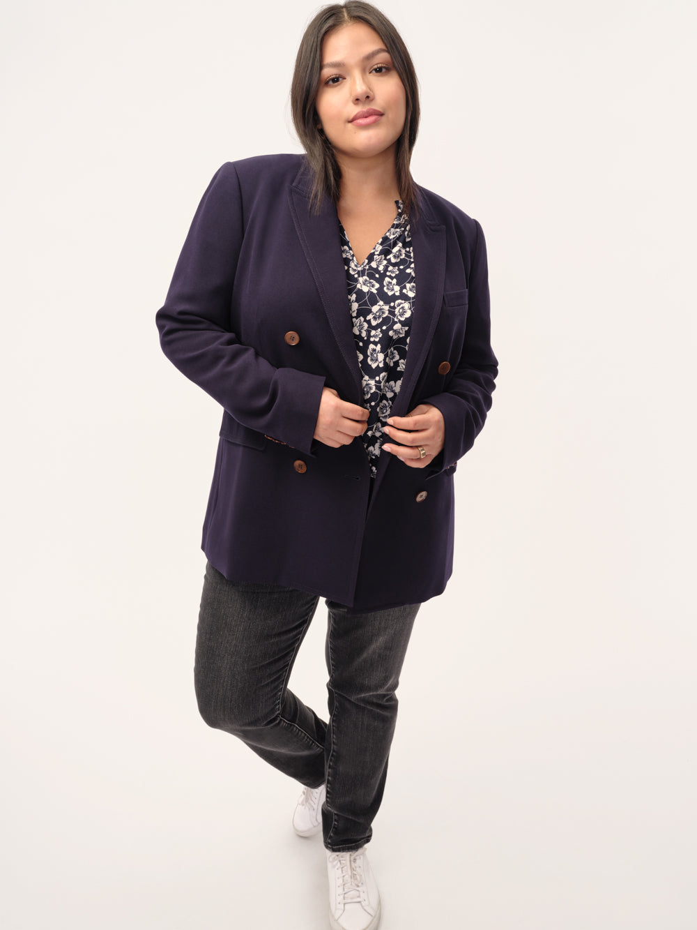 A timeless, double-breasted blazer with an easy fitnot oversized, just a laid-back, loose drape.